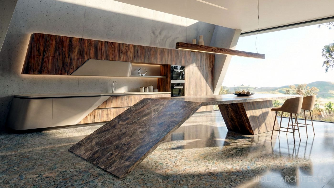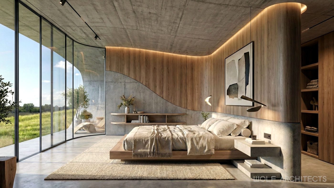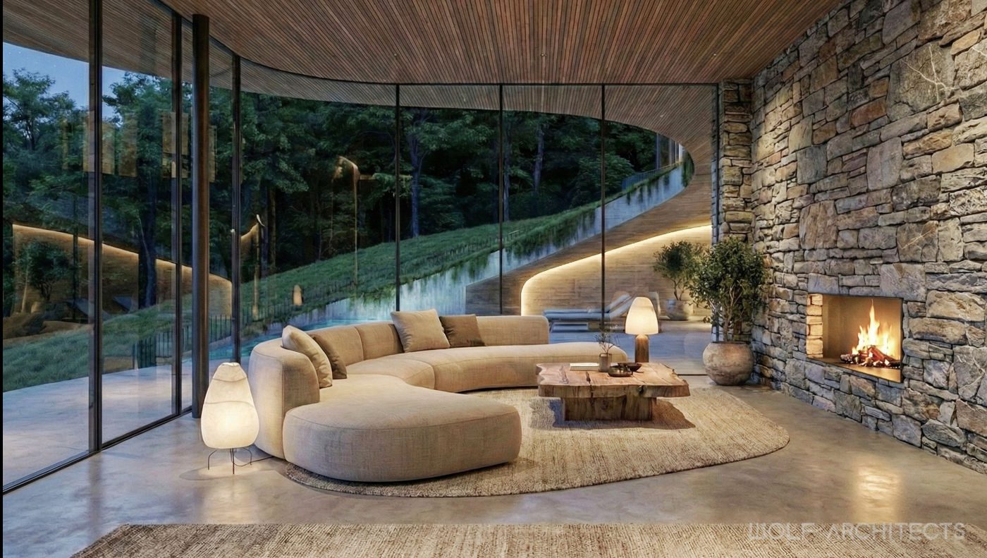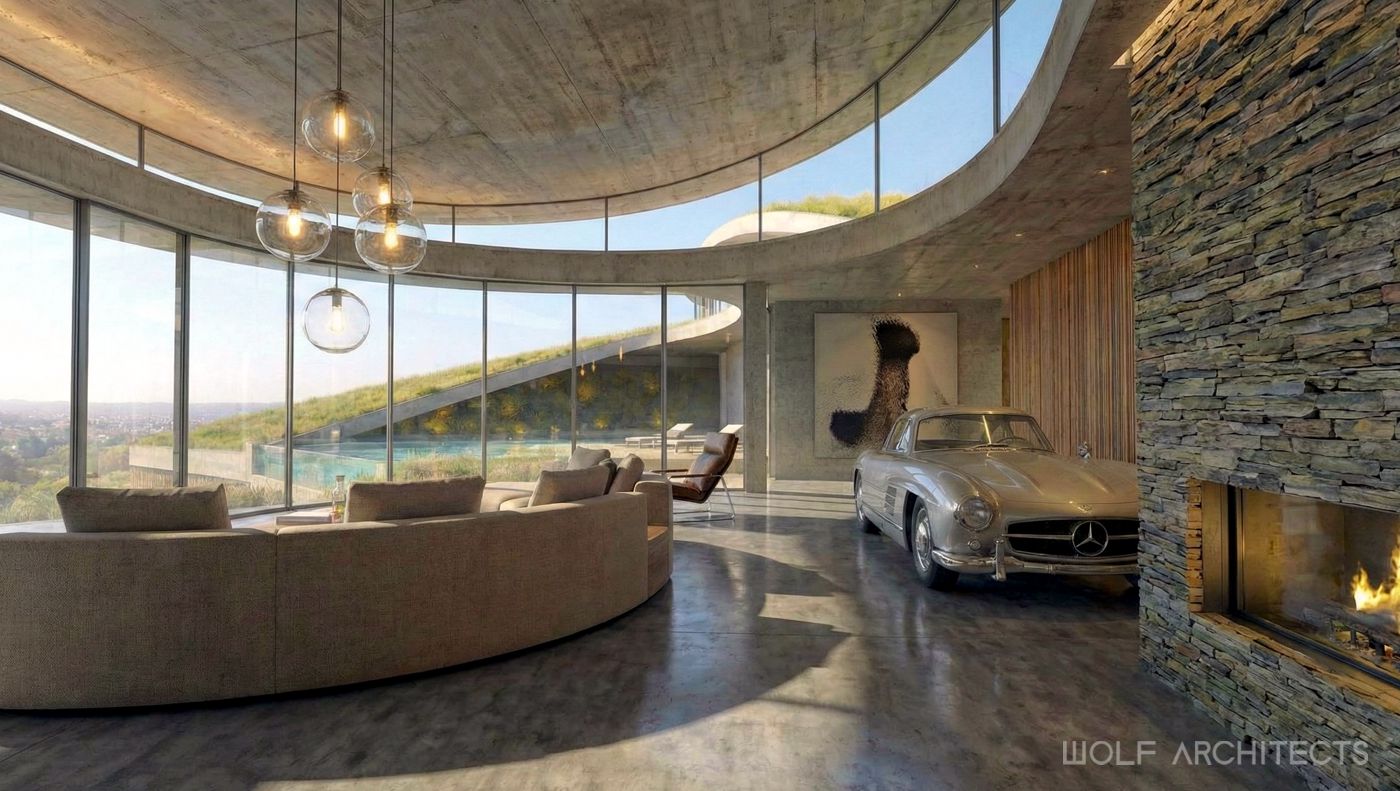 Renown for creating stunning homes throughout Australia, WOLF Architects were challenged to design the best house in the entire country. The mandate was simple- “Go for it, and create your best work…….blow us away!”. The site is a on hill in rural farmlands with excellent aspects to natural reserves and waterways. Wolf Architects approached the project with two teams of experienced designers. One to develop a layout and program to meet the clients requirements, and a second team that explored form before function. The two teams collaborated and coordinated frequently to create an organic shaped building that in the clients words were “Breathtaking and exquisite”. Further to being the best in the land this is a home that is one with the land. Garden roof spaces flow, and merge with the surrounding such that from a distance this house appears as if it were a part of the hill. Organic lines blend and merge seamlessly with one another for truly unique architectural experience.