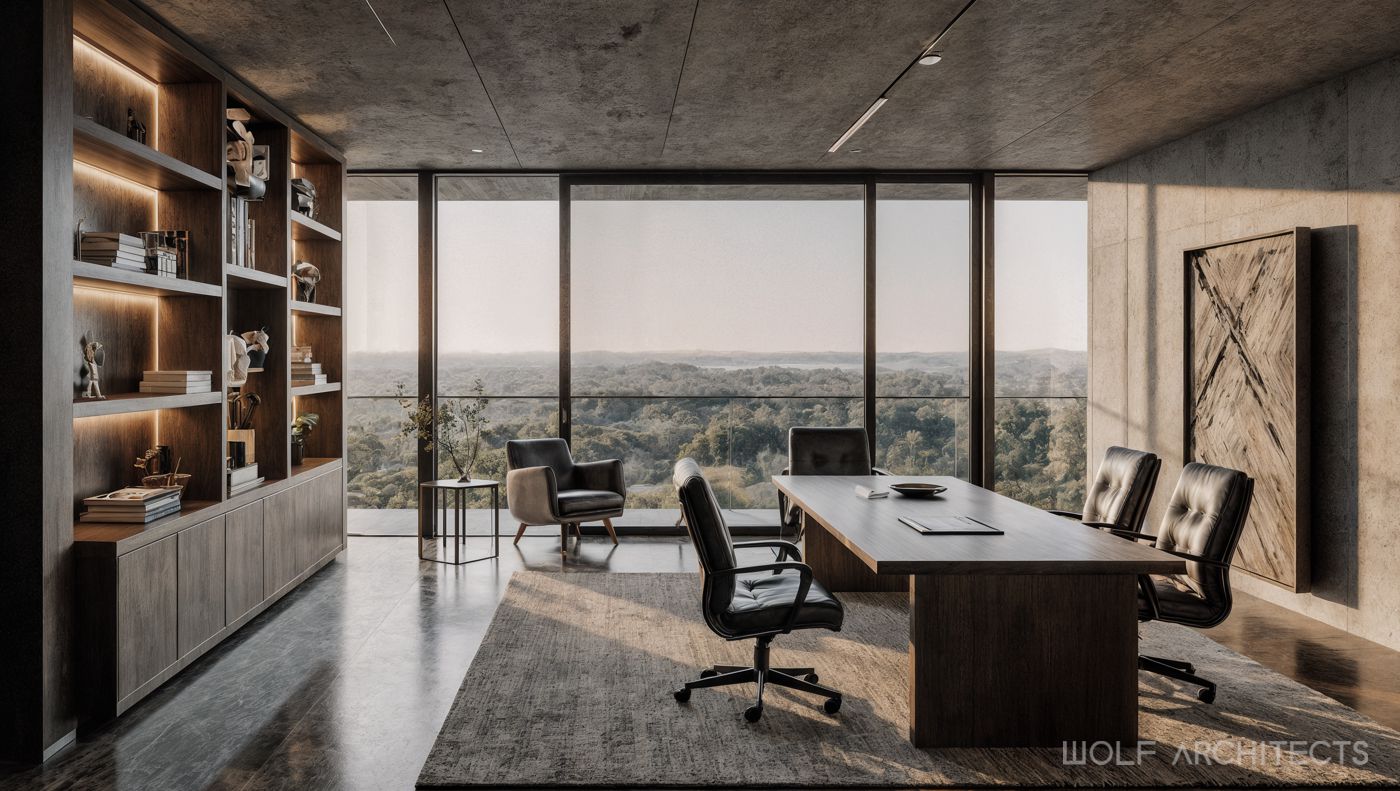 Materiality throughout considers durability, to age with grace with minimal maintenance. While concrete is selected as the primary structural material, it is animated differently throughout the building with several different finishes from raw to polished. This structural frame is further complimented by stonework, rammed earth walls and various steel cladding materials. In many spaces the natural rock in the substructure has been exposed to compliment the interior. All is sensitively combined with natural timbers internally to create the warmth and comfort expected in all WOLF homes.